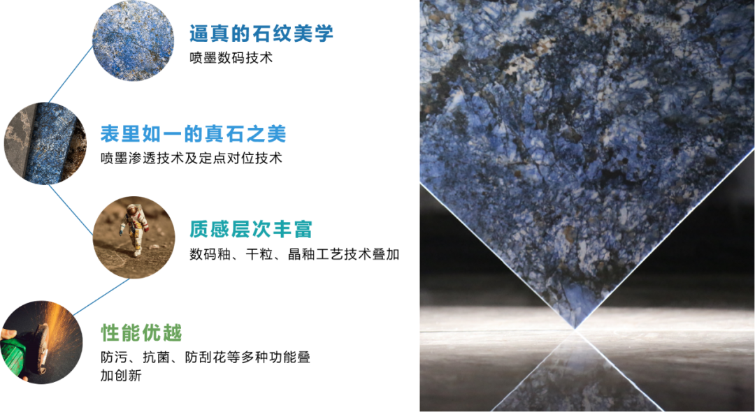 近几年,蒙娜丽莎更是先后实现喷墨技术在釉面砖应用、多重干粒布料技术在瓷砖应用、喷墨渗透技术在瓷抛砖应用、珍贵石材高精度复刻、定点对位技术实现通体效果等创新突破,生产出巧夺天工的“仿石”陶瓷板(砖)产品。