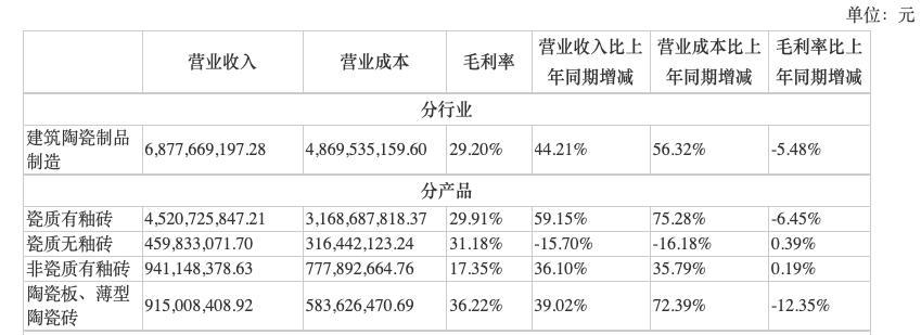 而在原材料价格大幅上涨条件下,成本端持续承压也是建筑陶瓷行业不得不面对的情况。