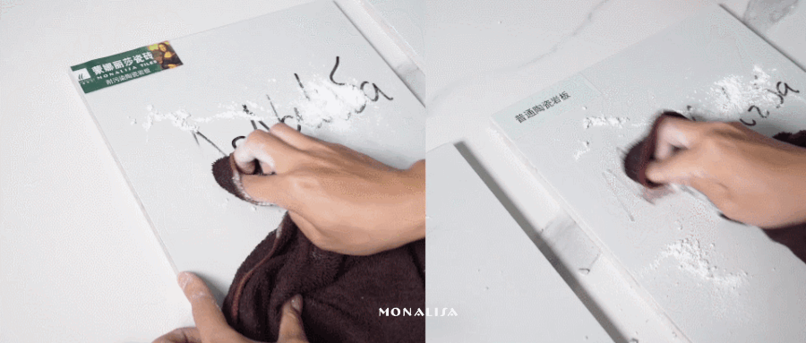 ?蒙娜丽莎柔抛大板耐污染对比测试??