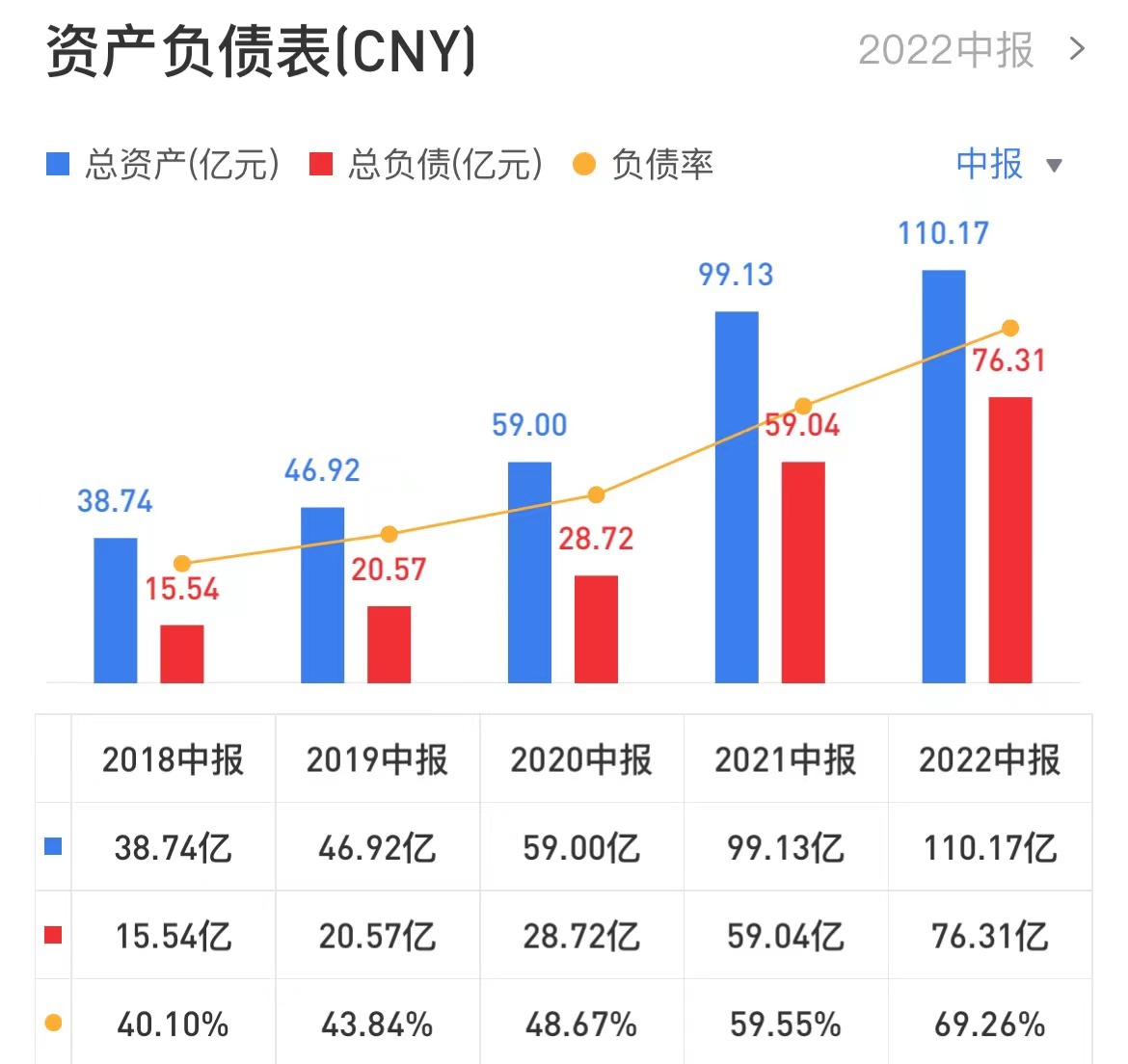 另一方面,随着蒙娜丽莎负债的增加,其负债率也在逐年升高。财报显示,今年上半年,蒙娜丽莎的负债率为69.26%,接近“红线”。2018-2021年上半年,蒙娜丽莎的负债率为40.10%、43.84%、48.67%、59.55%。