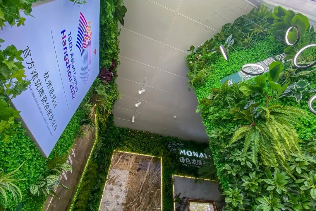 2023年,蒙娜丽莎作为杭州亚运会官方建筑陶瓷独家供应商,向世界展示中国陶瓷企业绿色绿、智能化转型成果,演绎精彩绝伦的绿色人居体验。