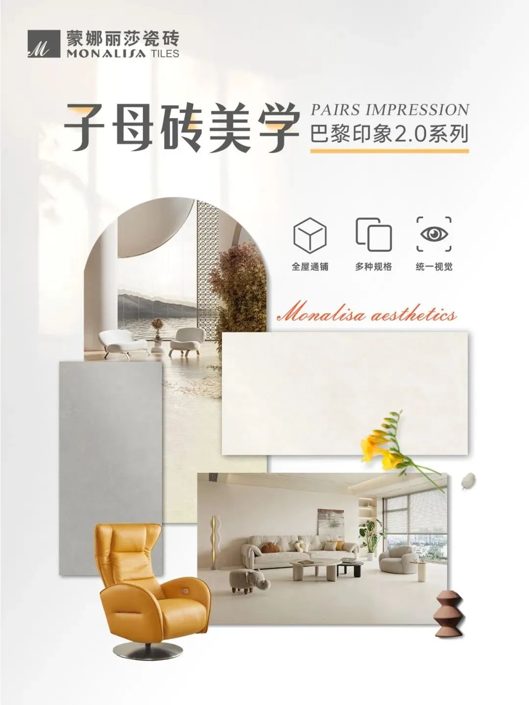 蒙娜丽莎巴黎印象2.0系列,汲取自然色彩与纹理打造六种经典灰系配色,冷暖相调,赋予空间素雅而不失精致的设计感与松弛感。