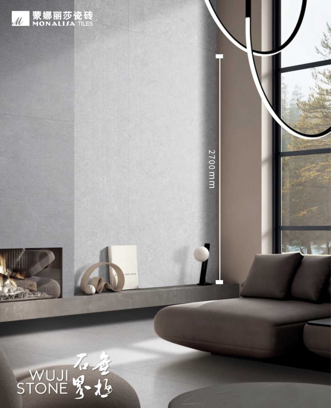 对标住建部“层高不低于3米”的住宅要求,通过1200×2700mm超大规格产品,实现“一片到顶”,从设计、品质维度满足高适配度、高品质的装饰材料需求。