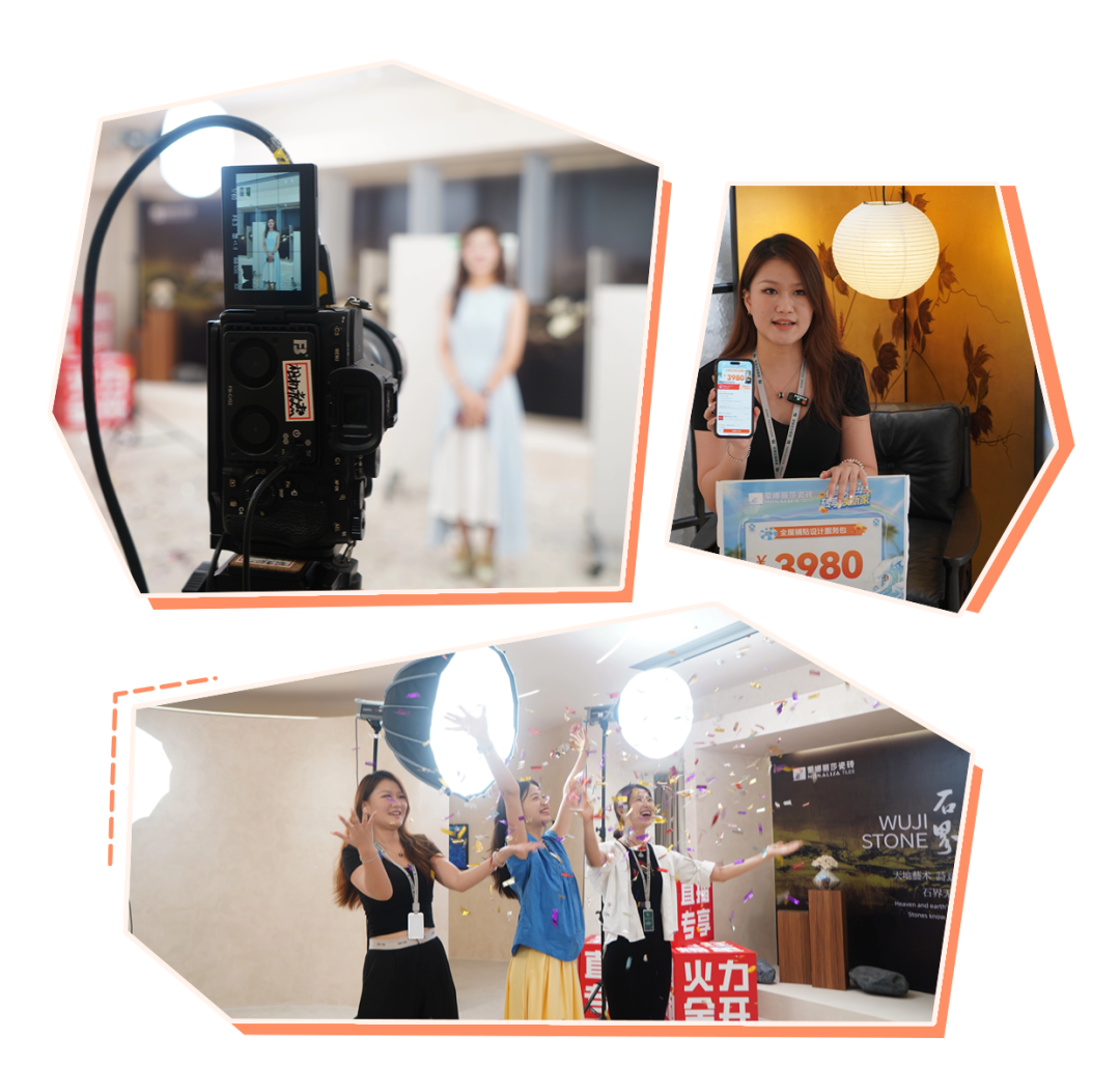 通过“线上引流+线下体验”的双向赋能,蒙娜丽莎瓷砖将公域流量转化为精准客流,构建“人、货、场”高效协同的新零售闭环。目前基地已配备专业常驻主播团队,为高质量、高频次的直播输出提供强有力保障。