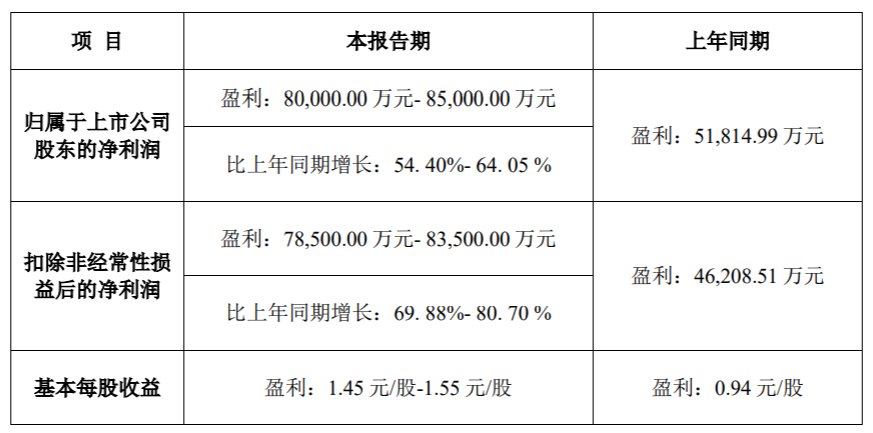 1月10日,惠州市德赛西威汽车电子股份有限公司(以下简称“德赛西威”)发布2021年度业绩预告,归属于上市公司股东的净利润为8亿元至8.5亿元,同比增长54.4%至64.05%;扣除非经常性损益后的净利润为7.85亿元至8.35亿元,同比增长69.88%至80.7%。