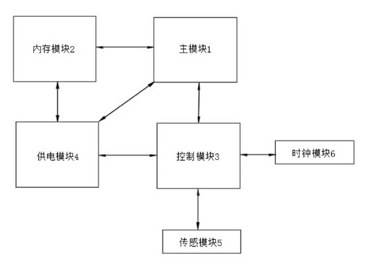图1为本专利提出的一种智能座舱系统的框图,包括:主模块1、内存模块2、以及控制模块3。其中,主模块1可以是SOC其连接于内存模块2和控制模块3。内存模块2用于存储软件状态,控制模块3用于每经过预设的间隔时间获取环境温度,将环境温度与设定阈值比较,根据比较结果,控制系统在深度休眠状态和STR状态之间切换。