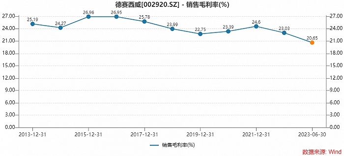 这是德赛西威上市以来的半年报新高,却也是公司销售毛利率最低的时刻。其销售毛利率由去年全年的23.03%降至今年上半年的20.65%。