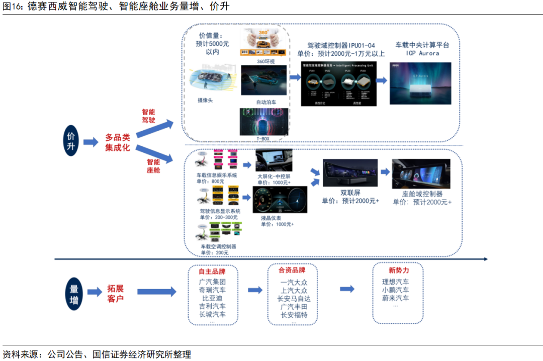复盘德赛西威发展路径,从智能座舱到智能驾驶,从大单品到集成化,从自主-合资-头部自主、新势力和合资,量增(拓客户)、价升(高附加值产品品类延展)是贯穿德赛西威客户和产品的核心逻辑。