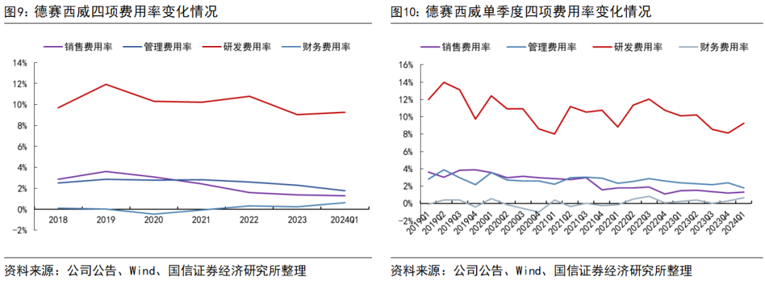 2024Q1公司毛利率为19.3%,同比-1.8pct,环比-2.2pct,净利率为6.9%,同比-1.4pct,环比-0.9pct。公司2024Q1四费率为13.0%,同比-1.2pct,环比+1.0pct,四费率同比下滑主要系公司研发效能提升,研发费用率下滑所致。