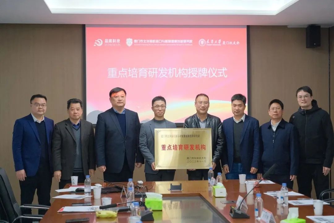 1月27日,第一届厦门市北洋脑机接口与智慧健康创新研究院迎新春座谈会在湖里区嘉禾路588号盈趣科创大厦7楼举办。厦门市科技局党组成员张亮亮,湖里区科协主席李玉昆,火炬高新区管委会创新创业处副处长蔡坤海博士等领导,以及天津大学医科院院长、北洋脑机研究院理事长何峰教授,天津大学厦门校友会会长魏明,盈趣科技董事长林松华、总裁杨明等共同参与会议。会上,在各级领导的见证下,科技局党组成员张亮亮与天津大学医工院副教授、北洋脑机研究院院长王仲朋进行授牌仪式,北洋脑机研究院成为厦门市重点培育研发机构。