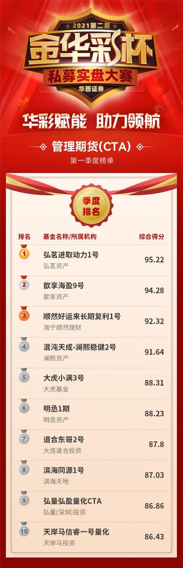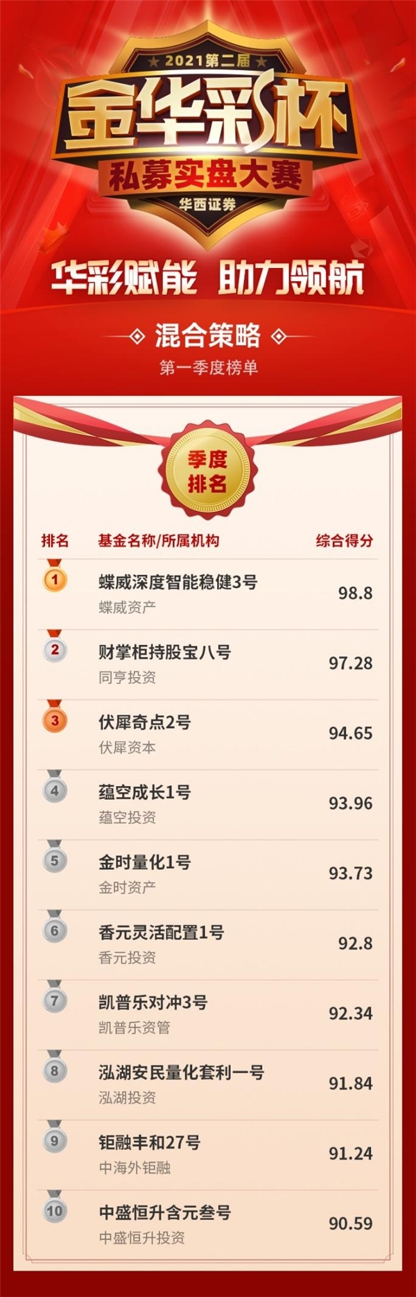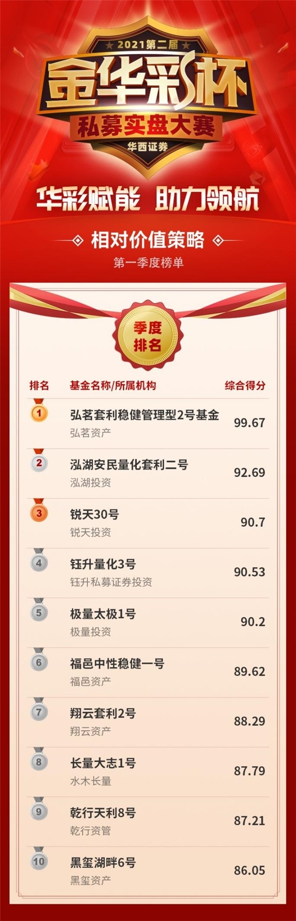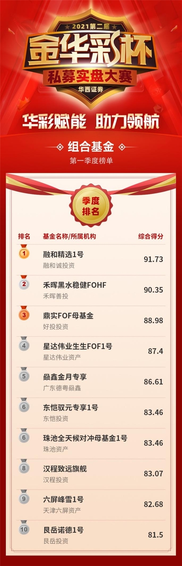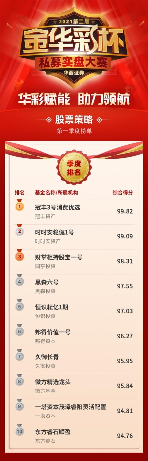 华西证券2021第二届“金华彩杯”私募实盘大赛首季度(8月份、9月份、10月份)排名如下: