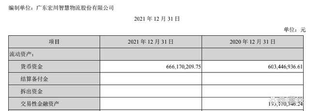 【i紫米】4月28日,广东宏川智慧物流股份有限公司2021年年度报告显示,截止报告期末,公司货币资金6.66亿元,去年同期为6.03亿元,交易性金融资产为0,去年同期为1.93亿元。同时,公司期末借款为26.81亿元,其中短期借款为1.33亿元,去年同期为0;长期借款为25.48亿元,去年同期为27.53亿元。应付债券5.55亿元,去年同期为5.21亿元。
