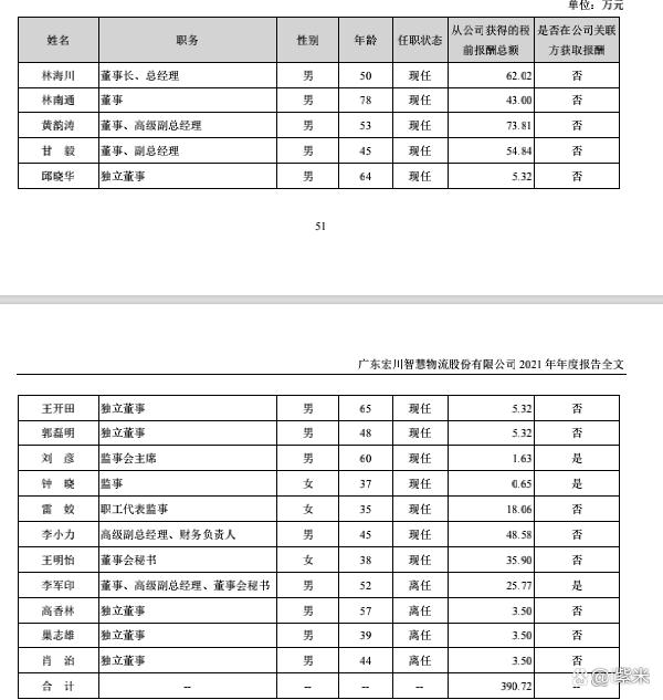 年报显示,报告期内公司实际支付董事、监事、高级管理人员报酬共390.72万元,董事长、总经理林海川2021年从公司获得报酬为62.02万元,董事、高级副总经理黄韵涛2021年从公司获得报酬为73.81万元,董事、副总经理甘毅2021年从公司获得报酬54.84万元。