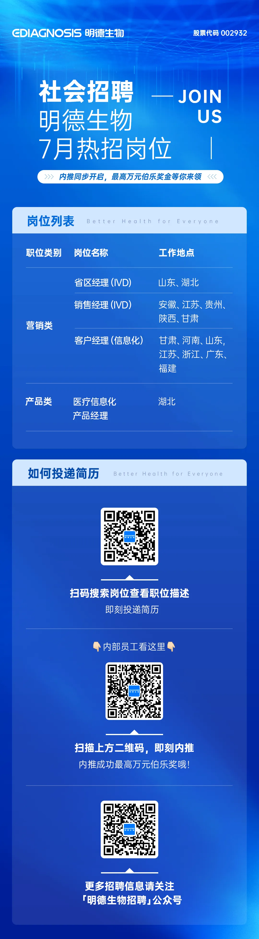社招 | 明德生物7月热招职位