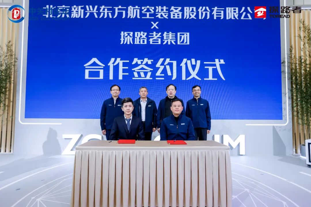 双方的签约代表分别是探路者集团副总裁谢凯东和北京新兴东方航空装备股份有限公司副总经理尤优。探路者集团董事长李明、总裁何华杰、北京新兴东方航空装备股份有限公司总经理向子琦和之江实验室科技控股有限公司董事长刘松国共同鉴签。