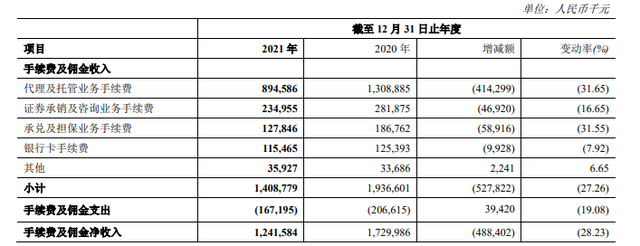 一是由于响应监管减费让利政策及代理托管业务规模减少,该行手续费及佣金净收入12.42亿元,较上年同期减少4.88亿元,降幅28.23%;二是由于以公允价值计量且其变动计入当期损益的金融投资收益变动,其他非利息收益16.10亿元,较上年同期减少0.27亿元,降幅1.67%。