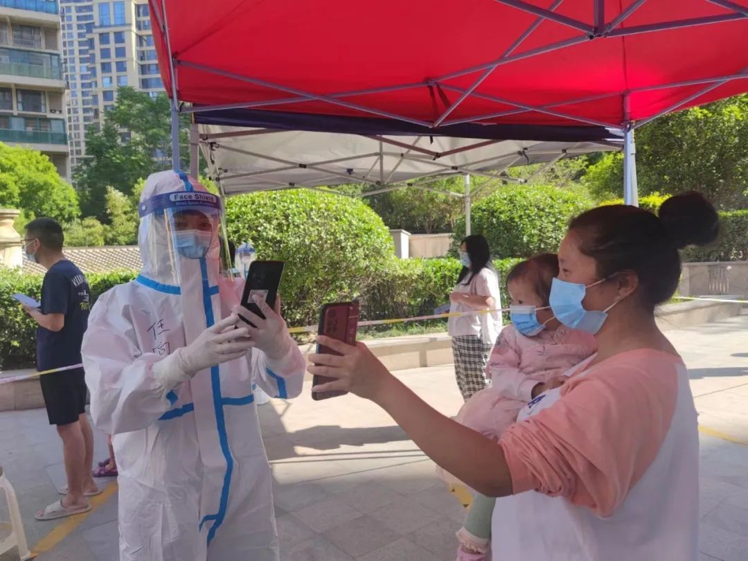 小企业金融事业部党支部张婷协助社区工作人员做好核酸检测,并配合开展疫情防控宣传工作。