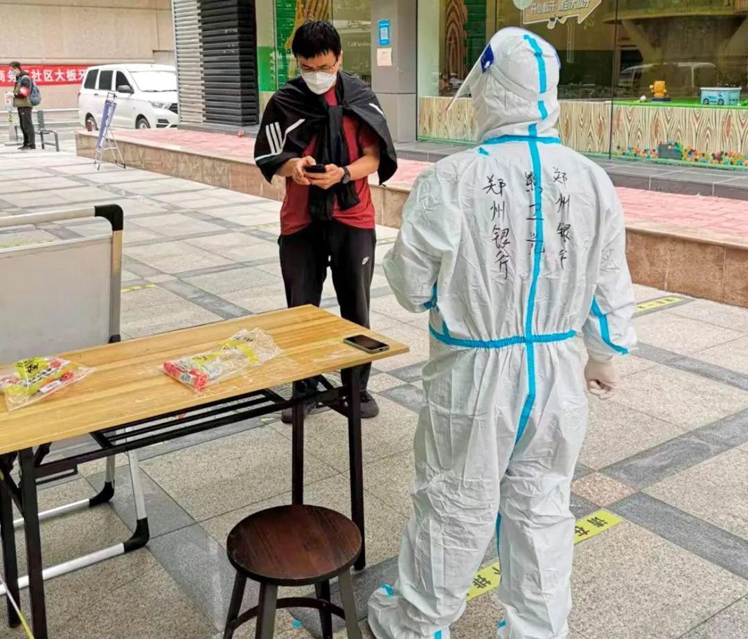5月14日清早7时,10名来自郑州银行总行机关的志愿者,已来到郑东新区如意湖办事处“未来国际”和“大板牙”两个核酸检测点位。他们作为郑州银行总行首批服务CBD区域核酸检测志愿者,全程参与当天全员检测秩序维护、扫码登记等服务。