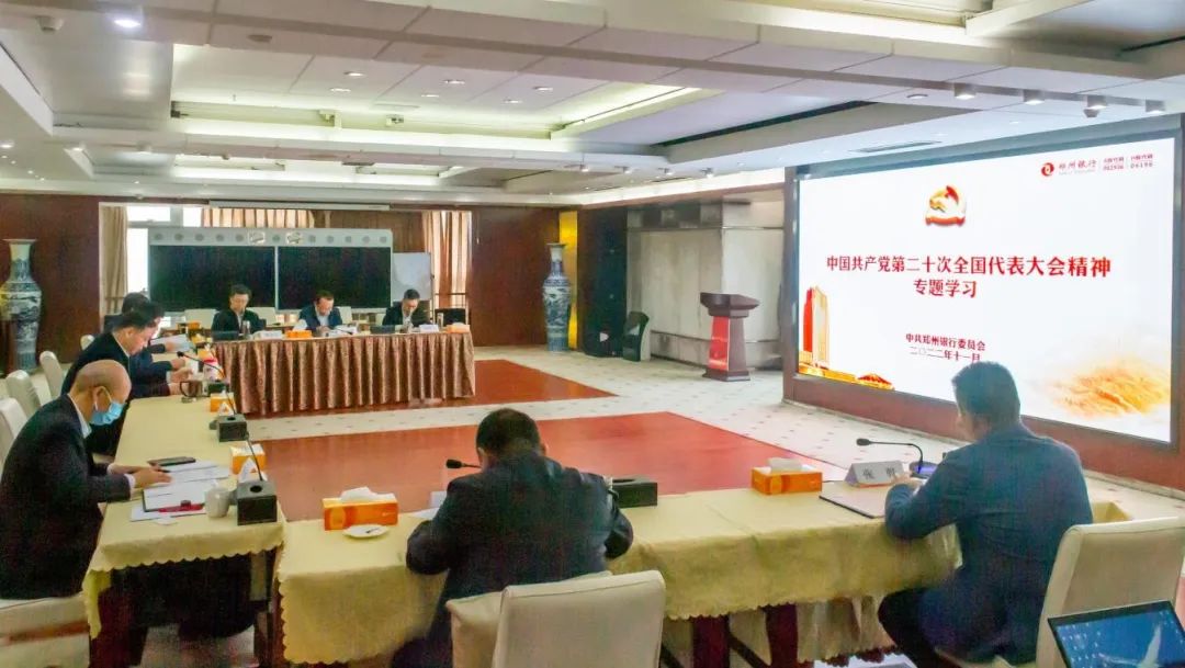 会议要求,全行要进一步强化政治引领,坚持党对金融工作的集中统一领导,始终以习总书记视察指导河南重要讲话、指示精神引领发展、指导实践,将学习贯彻二十大精神纳入干部培训日程和基层“三会一课”,全行上下思想统一、步调一致,切实把思想和行动统一到中央、省市委各项决策部署上,融入到郑州银行高质量转型发展的新征程中,继续坚定推进“五四”战略,牢记金融为民宗旨,高质量服务实体经济、乡村振兴和绿色产业,全力推动科创金融、普惠金融发展,统筹好发展和安全,提升平衡协调可持续发展能力。