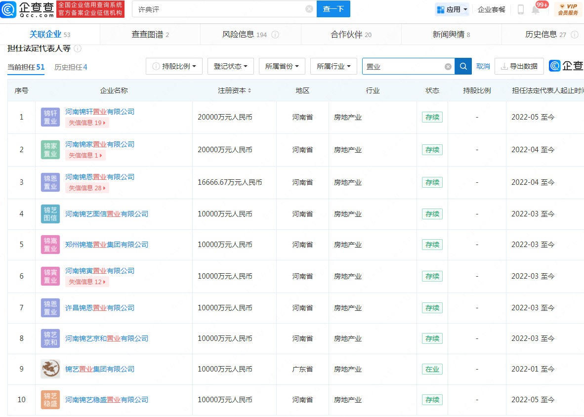 目前,许典评担任法人的多家房地产类公司已沦为失信人,其中就包括为畅科贸易的6亿元贷款提供担保的这几家。