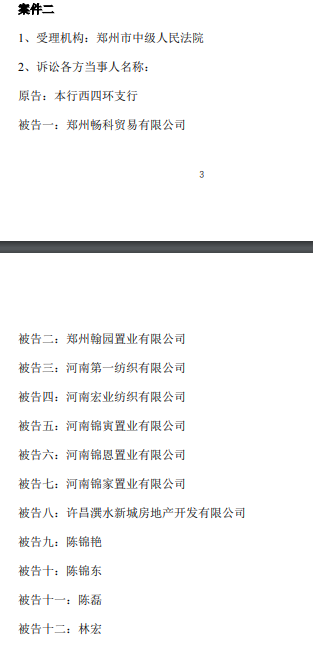 两笔逾期借款的客户均和房地产公司有关,目前郑州银行已将对方告上法庭,为两笔逾期贷款作保的多家房地产企业也一同出现在被告名单中。