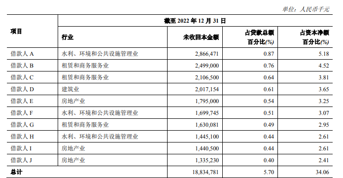 此外,在郑州银行的前十大贷款客户中,房地产业的客户也占到3个,三大房企客户未收回本金额合计为45.7亿元,占贷款总额比例合计为1.38%。