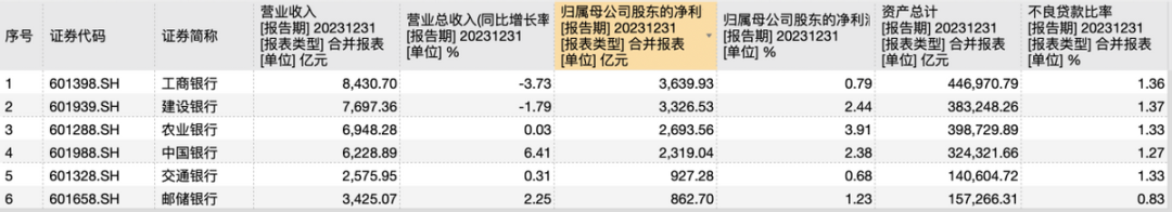 两家营收下降,农行利润增长最快