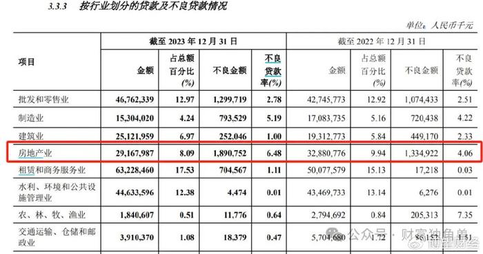 而最受市场瞩目的还属郑州银行的不良贷款率,2023年高达1.87%,高居板块第一。分行业看,不良金额最多的行业来自房地产业,不良贷款率高达6.48%,同比猛增近60%。值得一提的是,2022年郑州银行凭借1.88%的不良贷款率同样霸居榜首。