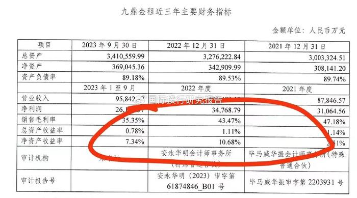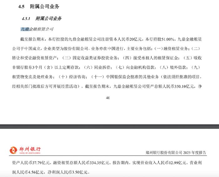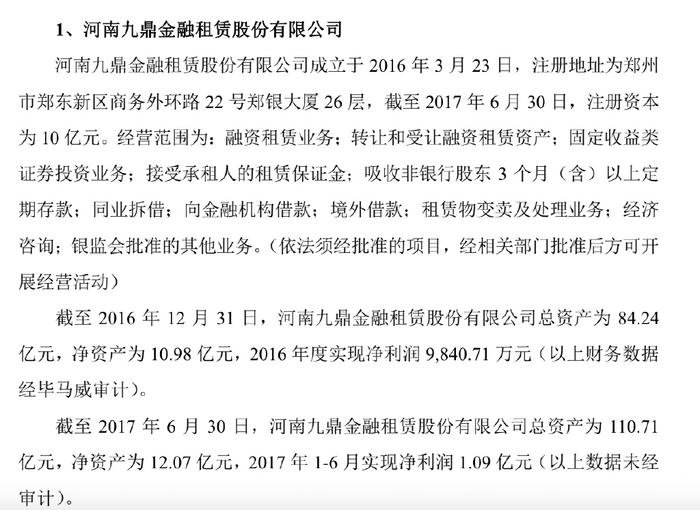 //郑州银行A股IPO说明书描述九鼎金租
