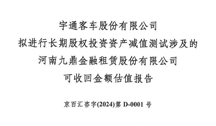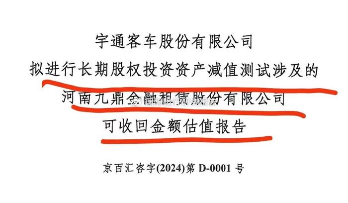 //宇通客车对九鼎金融大幅计提4.5亿