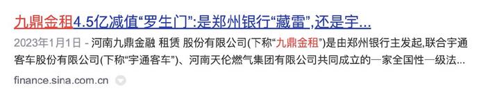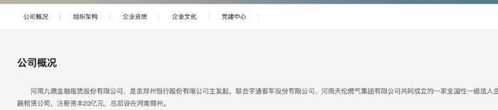 //河南银行发起九鼎金租宇通客车是第二大股东