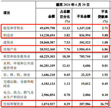 据郑州银行半年报披露,该行不良贷款主要集中在房地产业、批发和零售业以及制造业,各行业对应的不良贷款率分别为6.86%、2.71%、5.88%,其中房地产业不良率同比增长0.38个百分点。