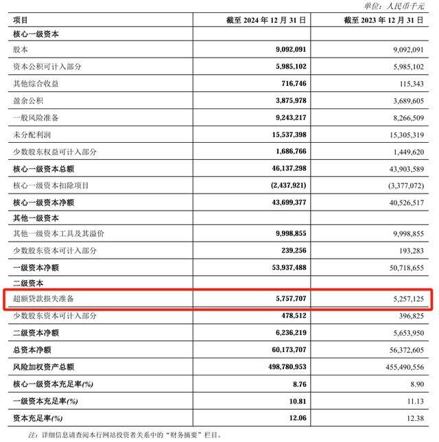 此外,虽然郑州银行下调了信用减值损失,但其超额贷款损失却在悄然攀升。截至2024年末,郑州银行的超额贷款损失准备57.78亿元,较2023年末增加50.06亿元,增幅9.52%。