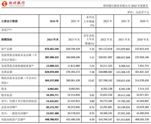2025年3月28日,郑州银行发布2024年年报。年报显示,2024年,郑州银行资产规模一路高歌猛进,涨势喜人。截至2024年末,该行资产总额攀升至6763.65亿元,较2023年末增长7.24%。