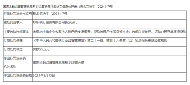具体来看,2024年3月,郑州银行股份有限公司新乡分行因违规向小微企业收取法人账户透支承诺费;贷款被挪用做项目资本金;违规以贷转存,滚动办理存单质押贷款,被国家金融监督管理总局新乡监管分局罚款95万元。时任郑州银行股份有限公司新乡分行副行长张某印被警告。