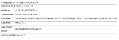 2024年9月,郑州银行平顶山分行因以贷转存;贷款风险分类不准确,被国家金融监督管理总局平顶山监管分局罚款70万元。时任郑州银行南阳卧龙路支行客户经理阚某被禁止从事银行业工作3年。时任郑州银行南阳卧龙路支行行长李某宇被警告。