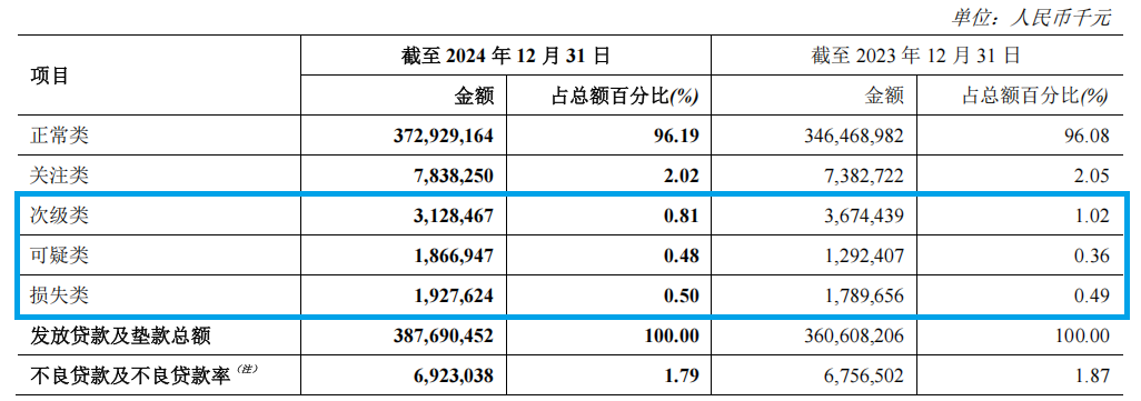 从余额角度看,2024年郑州银行的不良贷款为69.23亿元,较2023年末的67.56亿元同比增长2.47%。其中次级类贷款为31.28亿元,较2023年末的36.74亿元减少5.46亿元;但是,可疑类贷款、损失类贷款分别为18.67亿元、19.28亿元,分别较2023年增加5.75亿元、1.38亿元。