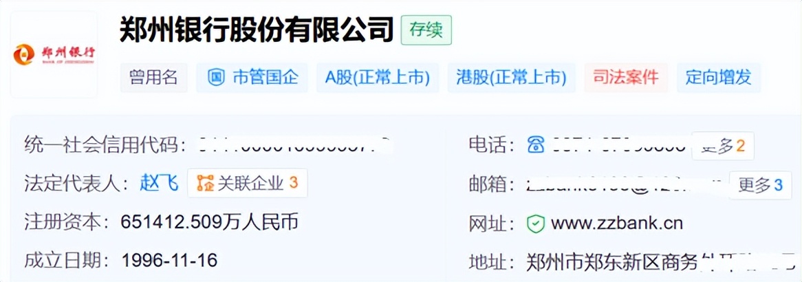 郑州银行原名“郑州市商业银行”,成立于1996年11月16日,注册资本为651412.509万元,法定代表人是赵飞。