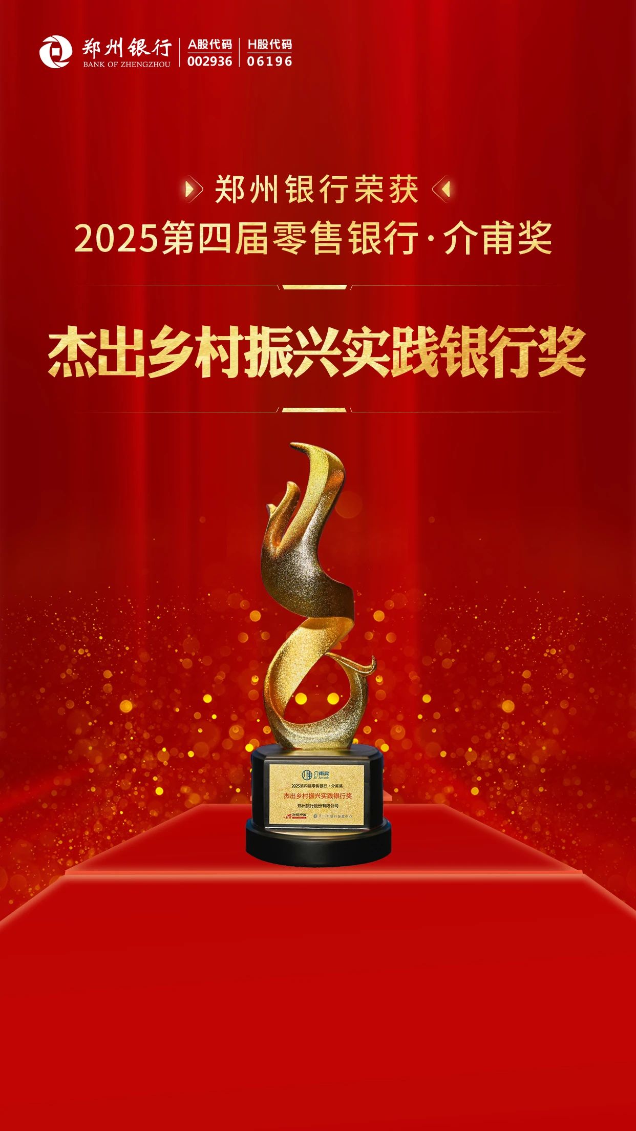 近期,由财视中国主办的“第四届零售银行论坛暨第四届零售银行·介甫奖颁奖典礼”在杭州隆重举行。郑州银行凭借在践行“五篇大文章”方面的工作布局与创新实践,荣获“杰出乡村振兴实践银行奖”。