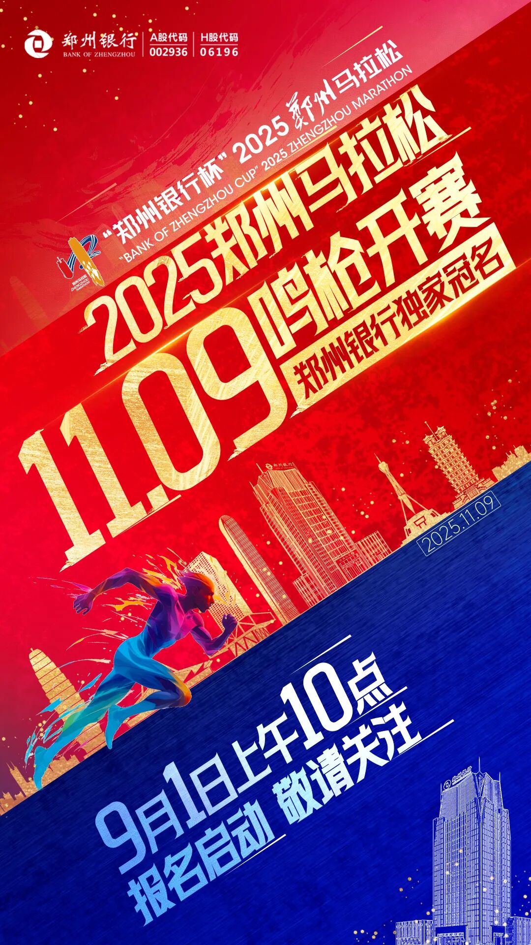 11月9日2025年郑州马拉松将鸣枪开跑,9月1日上午10点报名启动,近期请关注组委会官方报名信息和我行官微、官网。