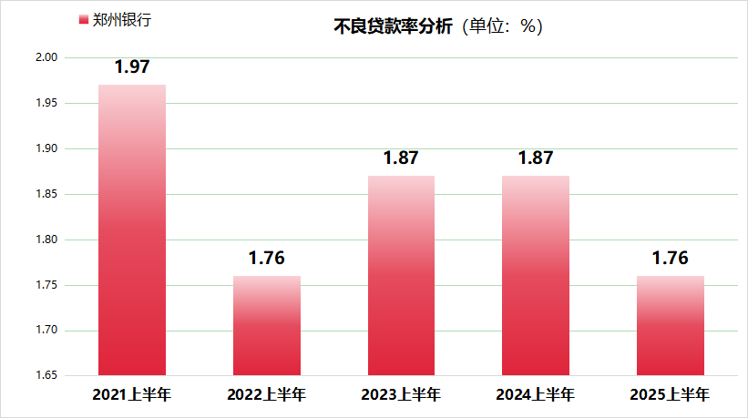值得关注的是,在资产规模快速提升的同时,郑州银行还实现了资产质量的优化。该行持续加强信用风险管理,加快不良资产处置步伐,为业务的持续健康发展构筑起坚固防线。截至6月末,郑州银行不良贷款余额为71.65亿元,不良贷款率为1.76%,较上年同期下降0.11个百分点。