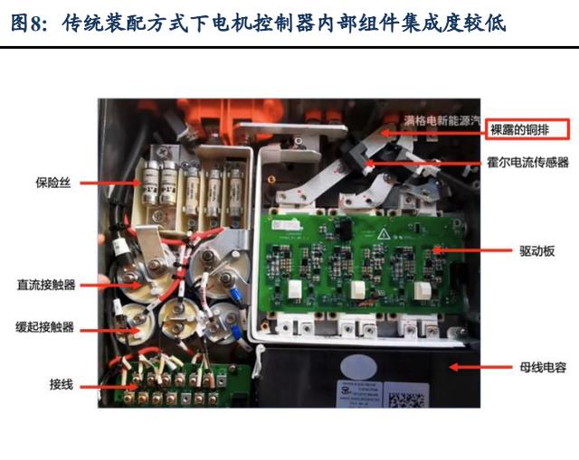 新能源汽车集成化趋势确定,镶嵌注塑件在新能源汽车端应用将持续拓宽。在汽车设计架构精简化和系统成本下降需求的驱动下,新能源汽车硬件系统集成化逐步加速,汽车硬件系统集成通过将模组的壳体、铜排等金属零部件集成在一起,减少了零件的数量和部件数量,同时通过将各器件之间高度集成,能够减少线束长度,最终达到系统成本最优、空间更简洁。从集成路径来看,预计大三电系统的驱动电机、电机控制器、减速器将率先整合为三合一电驱系统总成,小三电系统的充电机、直流变换器、高压分线盒整合为充配电三合一总成,最终再逐步整合为多合一的集成方案。目前汇川、华为等均已经推出了多合一的集成系统。嵌件注塑工艺也将受益新能源汽车的集成化趋势,从在 PDU、DCDC 等分立部件的系统集成,加速走向将多个分立部件集成在一起的集成化之路。