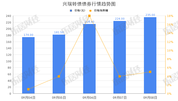 09月11日,“兴瑞转债”(127090)早盘拉低,截至11:10,跌幅20%,报188.00元。总成交量111.92万手,成交额27.01亿元。