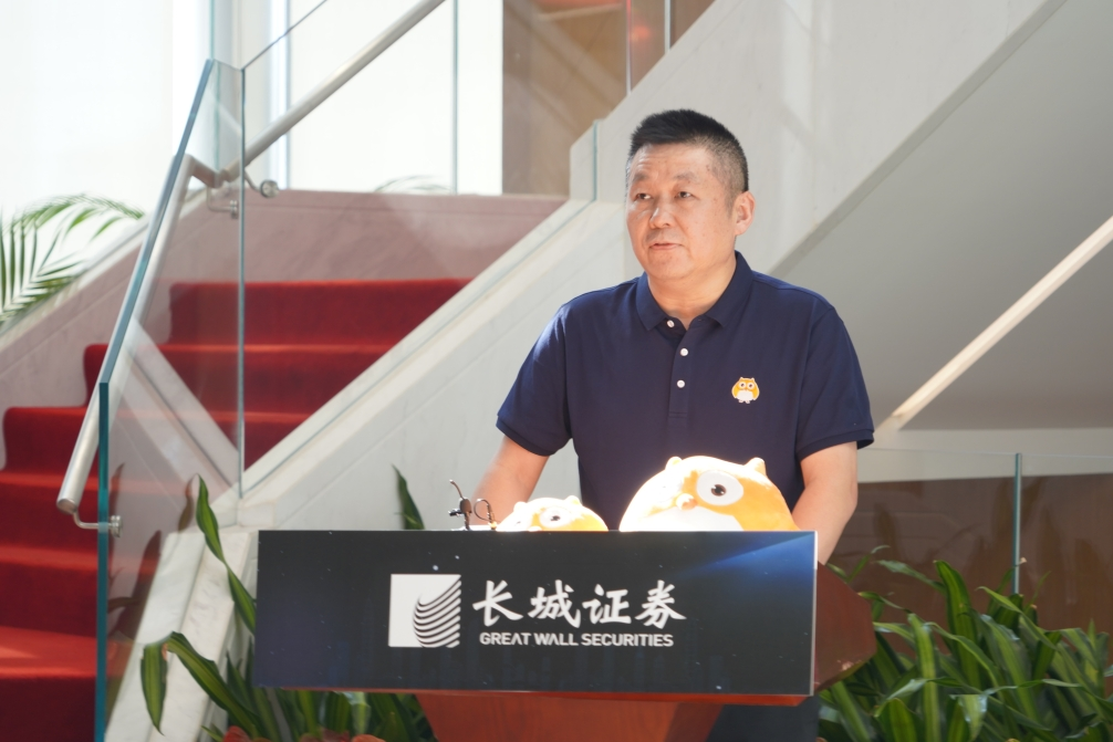 最后,李翔总裁发表致辞。他首先肯定了“金哥Club”新媒体项目的重要意义。他指出,这是移动互联网时代的新机遇,我们要积极参与、勇于抓住机遇。他强调,我们全体长城人要发奋努力、众志成城,在“十四五”战略的指导下,背负起“再造一个长城”的历史重任,为长城证券的长远发展打下基业长青的坚固基石。