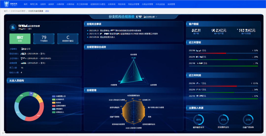 为贯彻公司“安全、领先”战略指导思想,落实公司“三提两控”工作要求,公司2023年重点打造了“御城”智慧合规风控平台建设项目,开发实现了员工投资行为申报2期、投资行为管控2期、合规考核2期、风控考核2期、合规智库升级、分支机构合规画像、合规咨询、合规网盘、风险事件跟踪、风险报告管理、重要风险模型管理等功能模块。长城证券合规管理数智化转型将以合规管理风险的可视、可管理为目标,为长城证券的“安全、领先”发展提供有力支撑,为集团公司和资本公司的发展贡献力量。该平台2023年荣获人民日报社《证券时报》“首届中国证券业合规风控数字化优秀践行者案例君鼎奖”和中国华能集团“2023年度管理创新成果”二等奖。