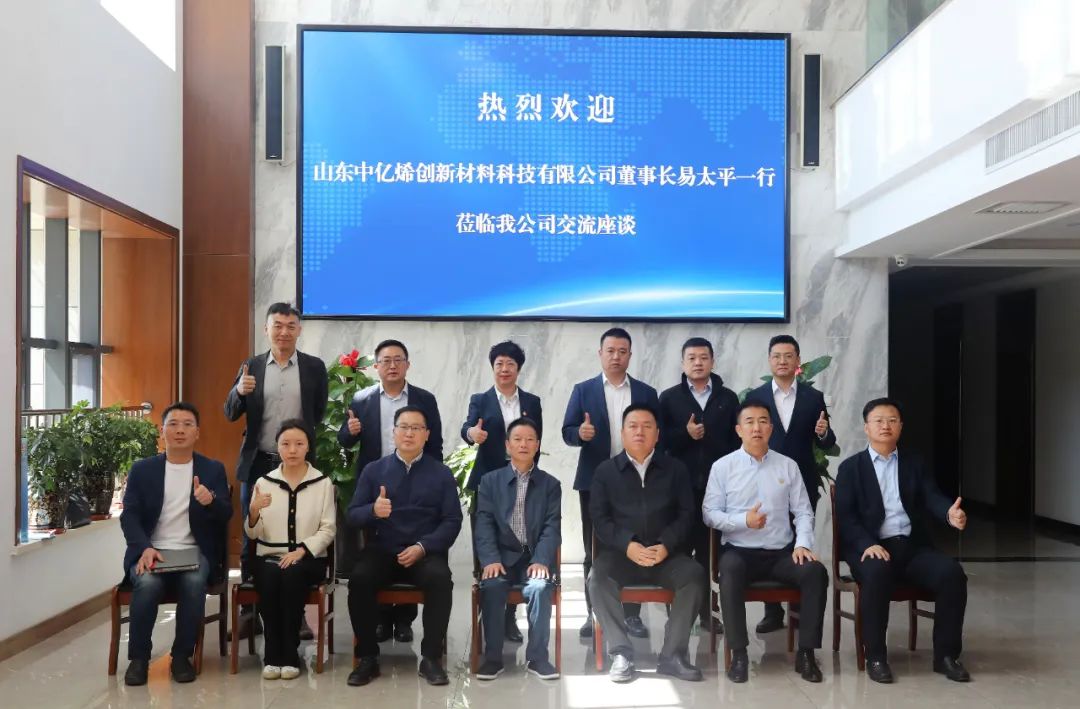 2022年4月14日上午,山东中亿烯创新材料科技有限公司董事长易太平一行莅临集团公司交流座谈。集团党委书记、董事长沈金生,集团金融副总经理、董事会秘书林强,集团副总经理王志华及集团相关部门负责人参加会议。