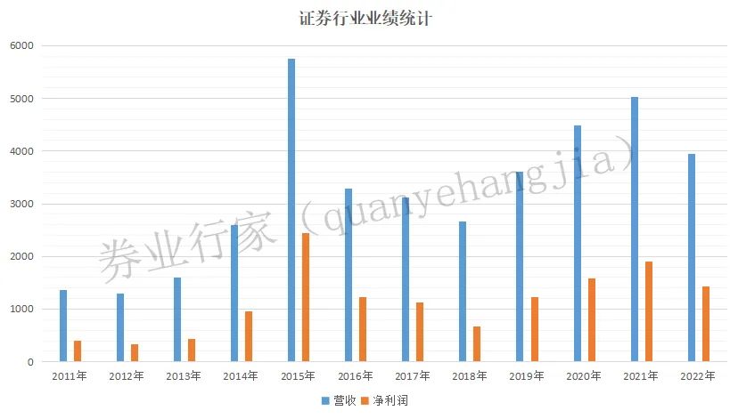 月前,中国证券业协会发布证券公司2022年度经营数据(未经审计)称,受多重超预期因素冲击,证券行业经营业绩短期承压。全行业140家券商营业收入3,949.73亿元,净利润1,423.01亿元。与2021年相比,营业收入同比下降21.38%;净利润同比下降25.54%。