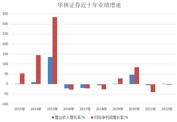 另外,拉长时间轴来看,华林证券近七年的业绩增速也不理想。2016-2022年,该公司营收增速4次为负值,其中2016年跌幅21%;归母净利润5次为负值,其中2021年跌幅达40.46%,2022年继续下跌3.94%。