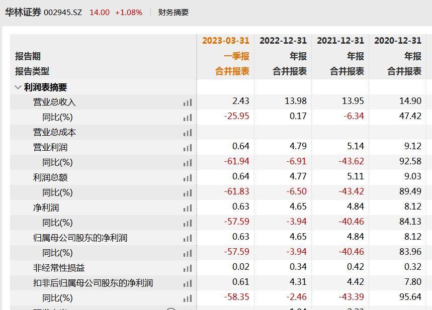 也因此,一季度华林证券营收净利再次双降,营业收入同比下降25.95%,归母净利润同比下降57.59%。