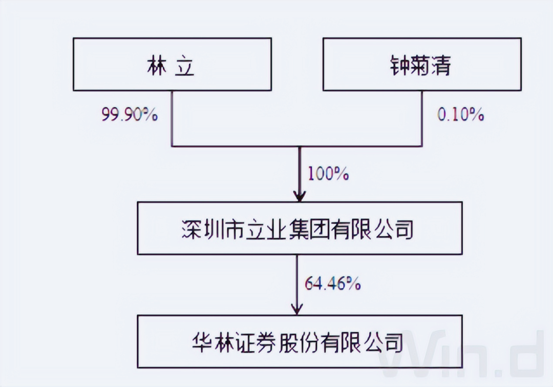 华林证券注册于拉萨,总部位于深圳,大股东是立业集团,实际控制人是林立,通过立业集团持股超过64%,形成绝对控制地位。华林证券也是目前上市券商中少数由自然人控制的企业。